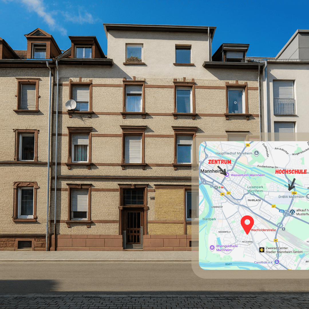 Mannheim ist eine der unterschätztesten Städte Deutschlands mit über 40.000 Studenten und großen Konzernen. Die Wacholderstraße liegt nur 500m von der Hochschule entfernt - perfekt für konstante Mietnachfrage. Während München überteuert ist, bietet Mannheim ähnliche Infrastruktur zu guten Preisen.